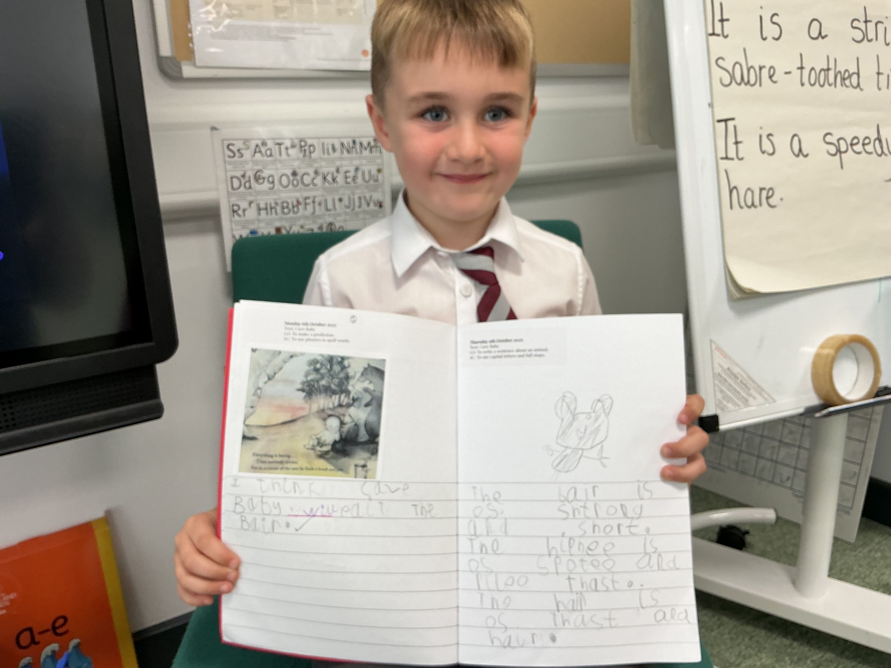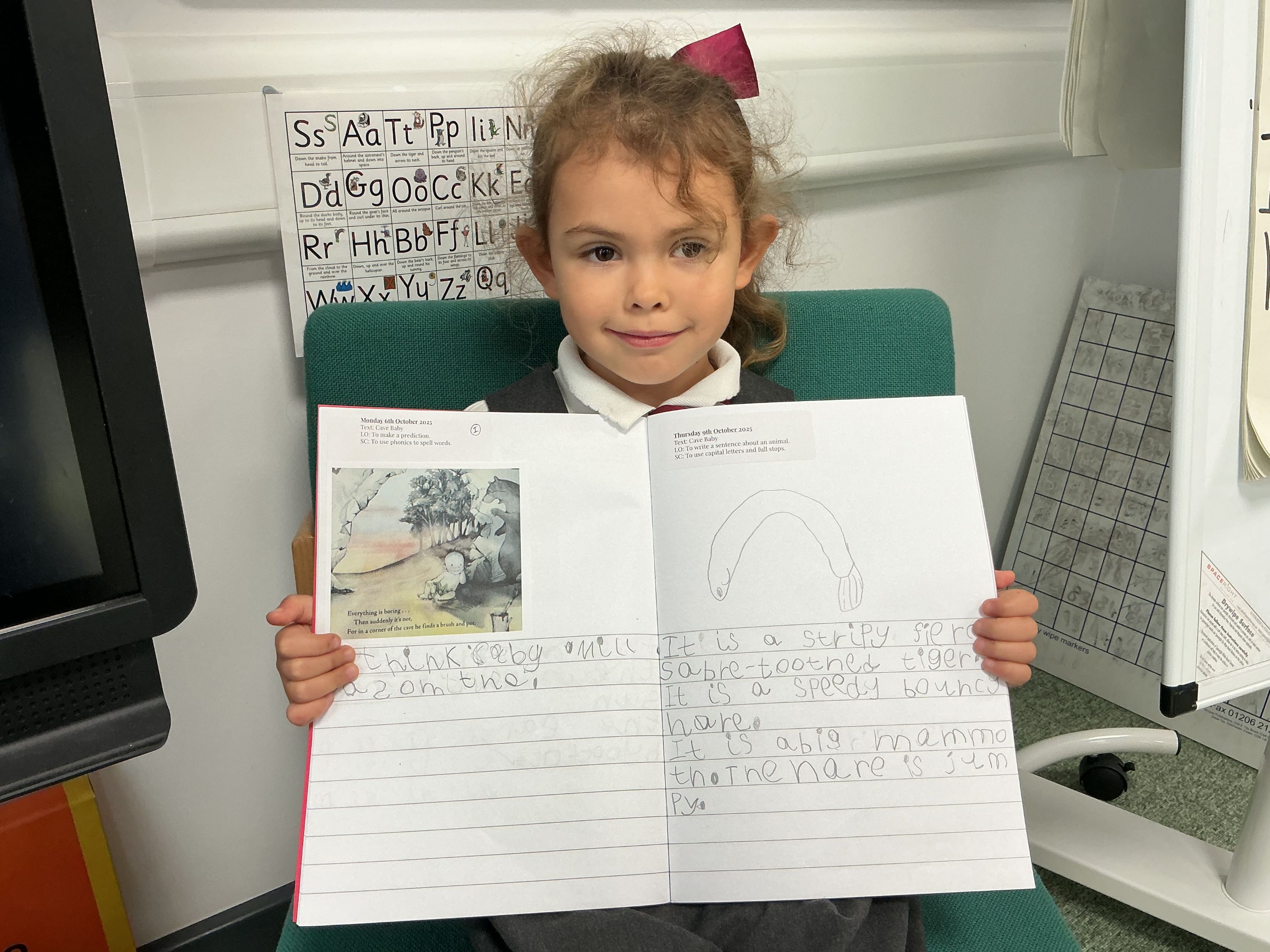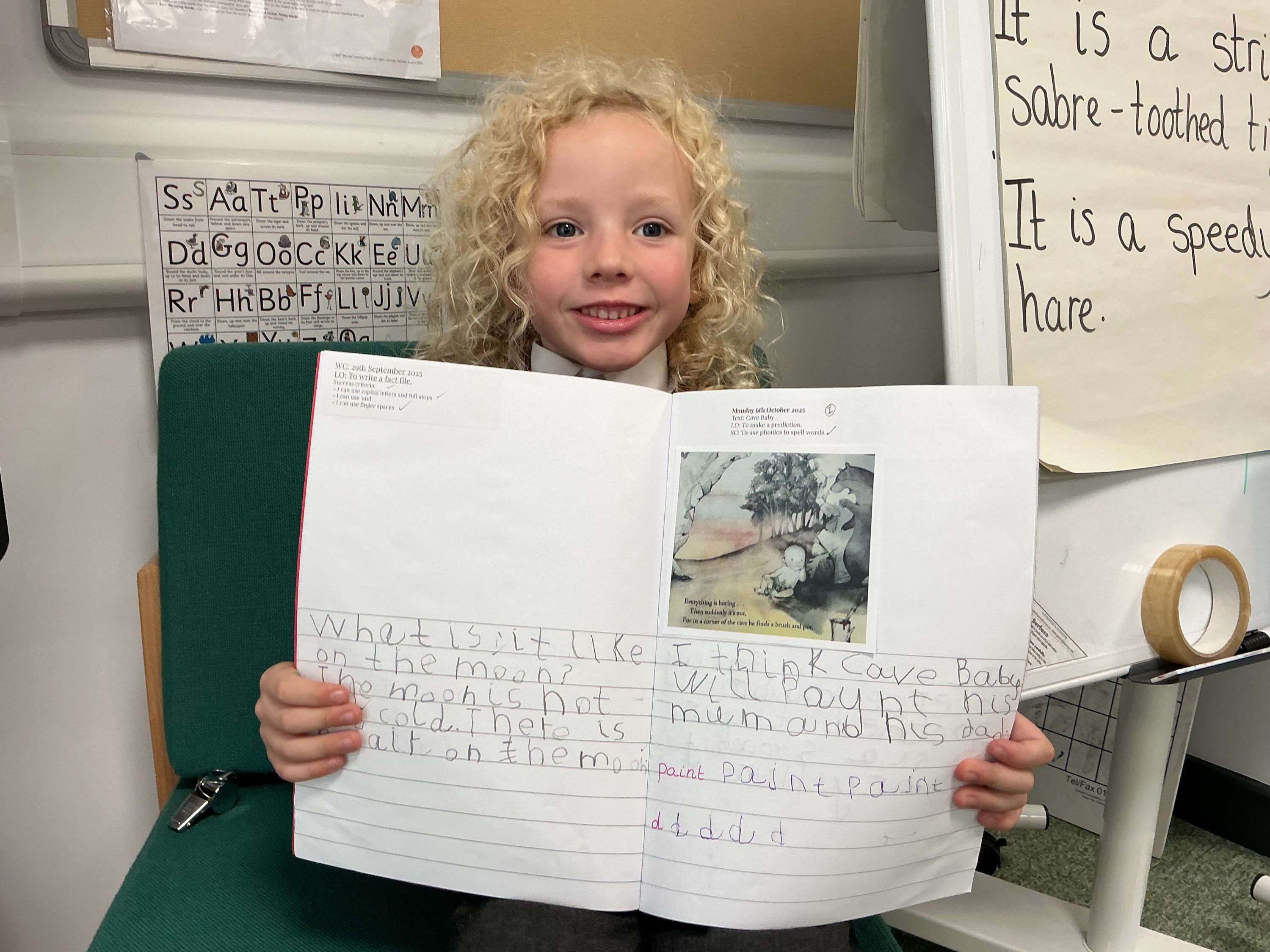 In our Literacy, our text focus has been 'Cave Baby' by Julia Donaldson. We have been making predictions, using drama to act out the animals in the story, and writing sentences describing the animals in the story.