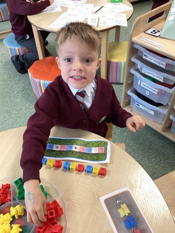In Maths, we have blown Mrs Stamp, Miss Rogers and Mrs Burke away with how quickly we have understood part-part whole. We have learnt how to use a 'part whole model' and a 'bar model' too. Year One, Rowan has been partitioning lots of numbers in various ways and can use double-sided counters to work out number bonds within 10 systematically.