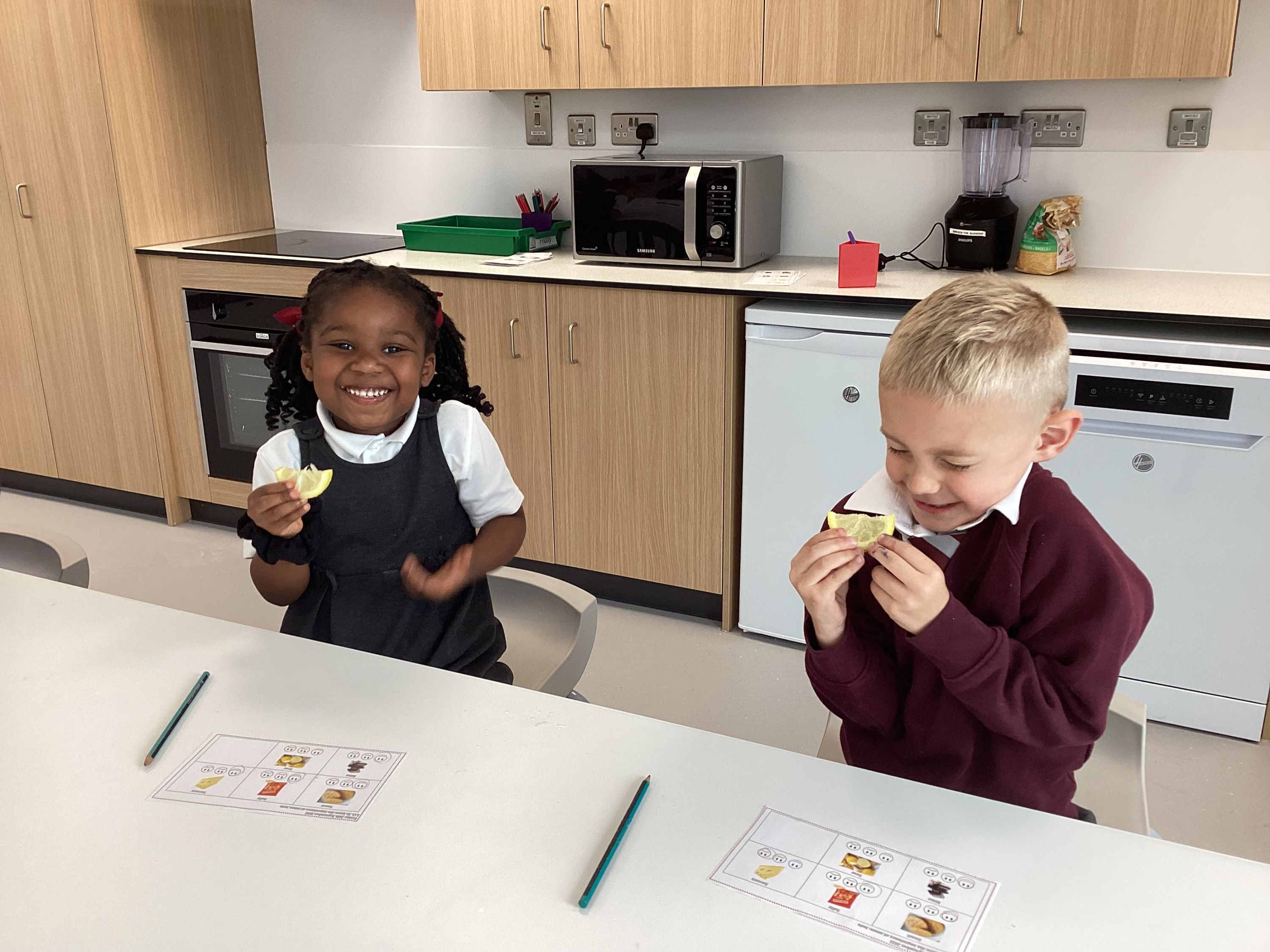 In Science, we have continued to learn all about our senses. We have taste tested a range of food and used words such as sour and sweet to describe what they tasted like. We also had some mystery boxes where the children had to use their sense of touch to figure out what was inside ...the pumpkin felt so slimy!