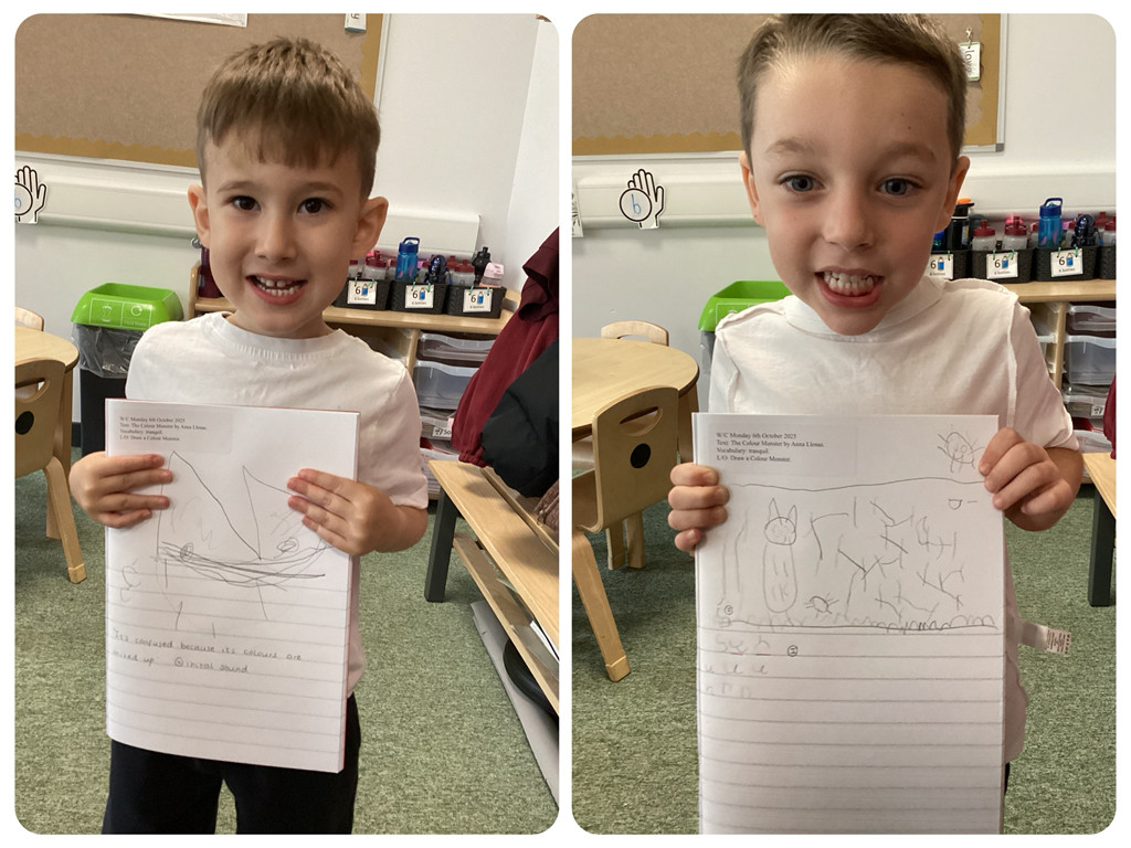 This week in Drawing Club, linked to World Mental Health Day, we read the Colour Monster. This is a favourite of Reception Maple, and it is a great story to teach the children about their emotions. We learnt all about the word ‘tranquil’ and designed our very own Colour Monster!