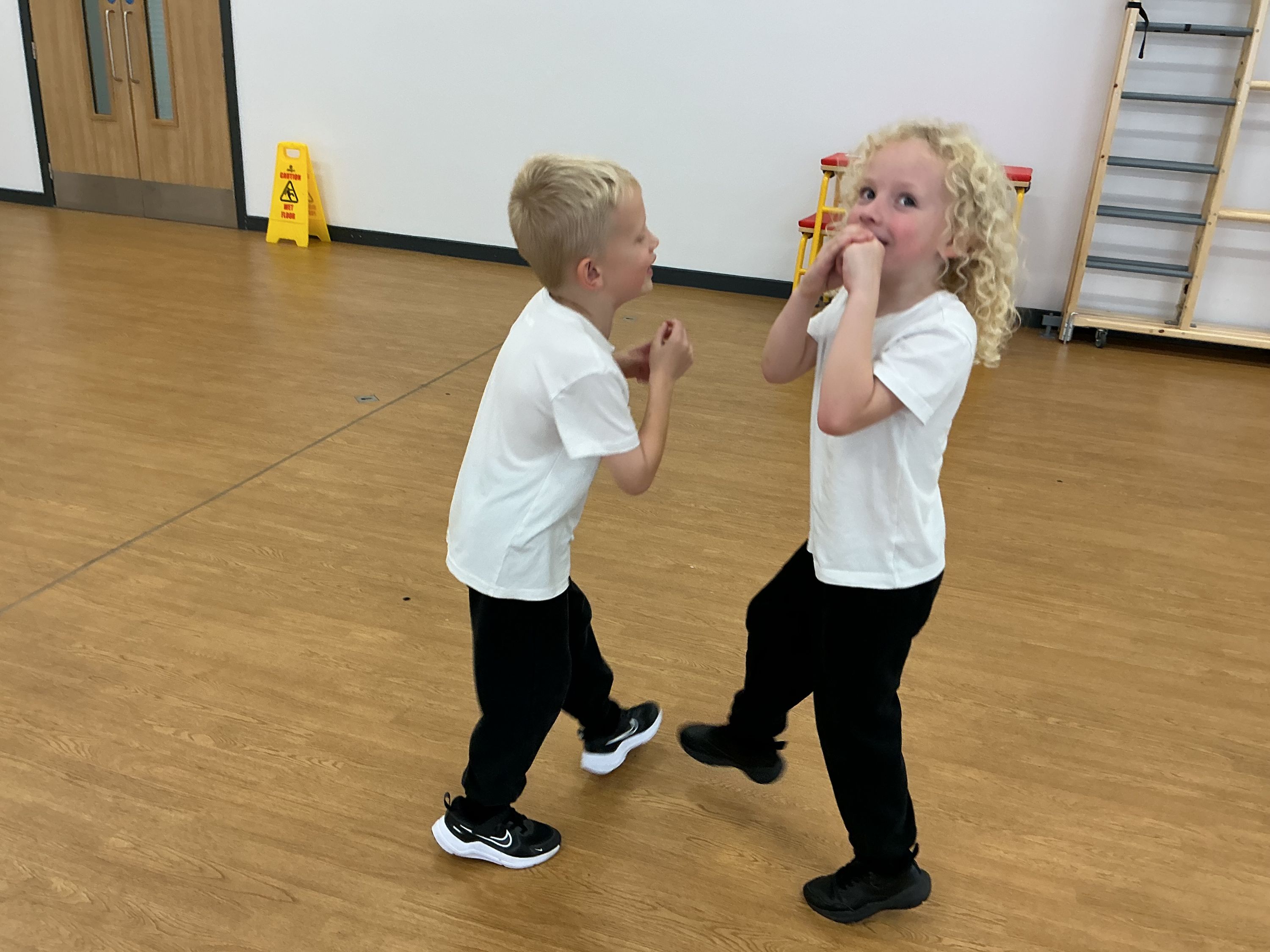 In PE, we have been working since the start of term on dance inspired by the 'Jungle Book'. Last week, we performed our final dance to the song 'I wanna be like you' in a lindyhop style. We have been mirroring our partners, jumping, kicking and twisting our way through the song. We came up with our own routines in small groups or partners and performed them in front of the class - they were brilliant!