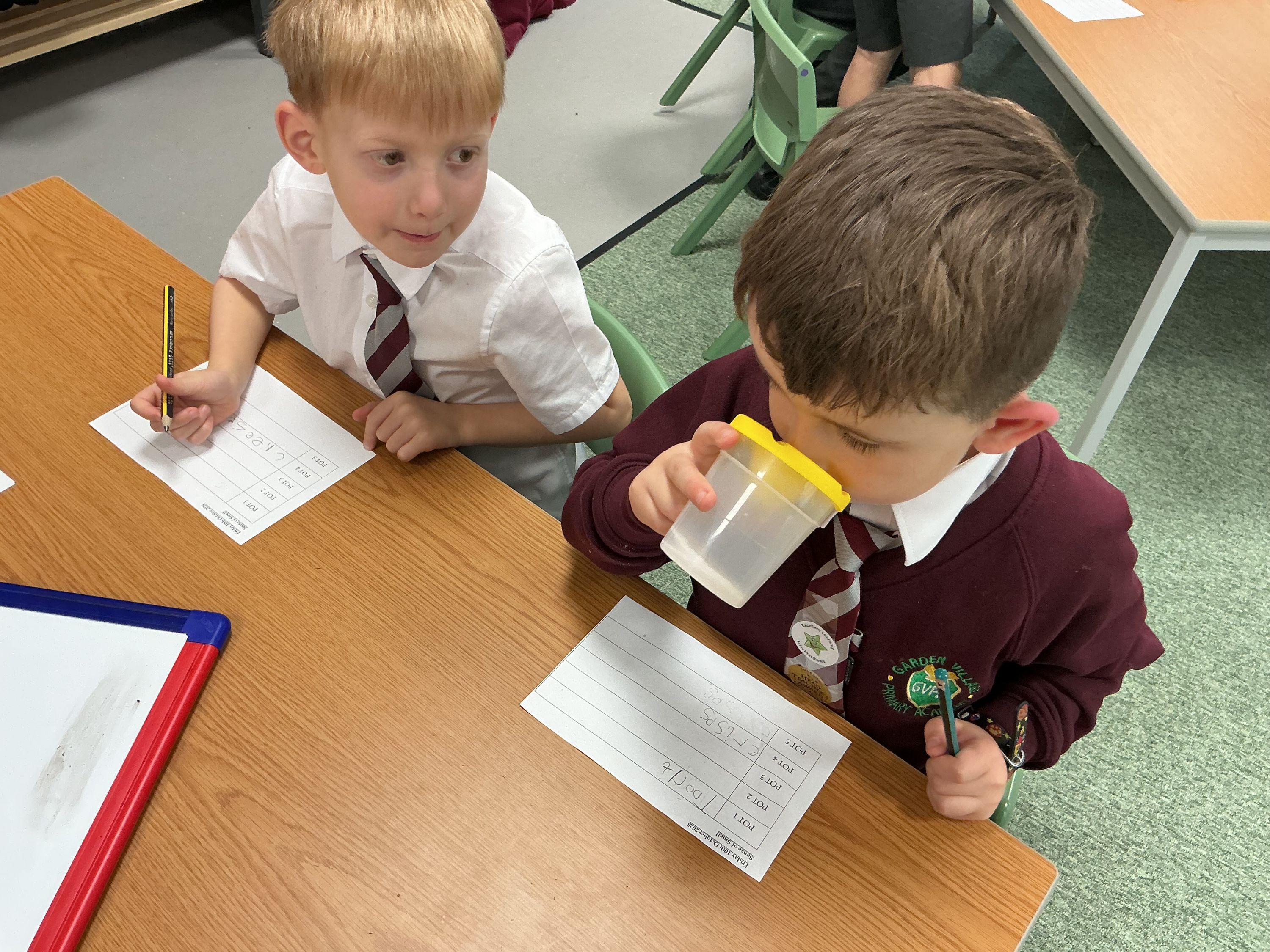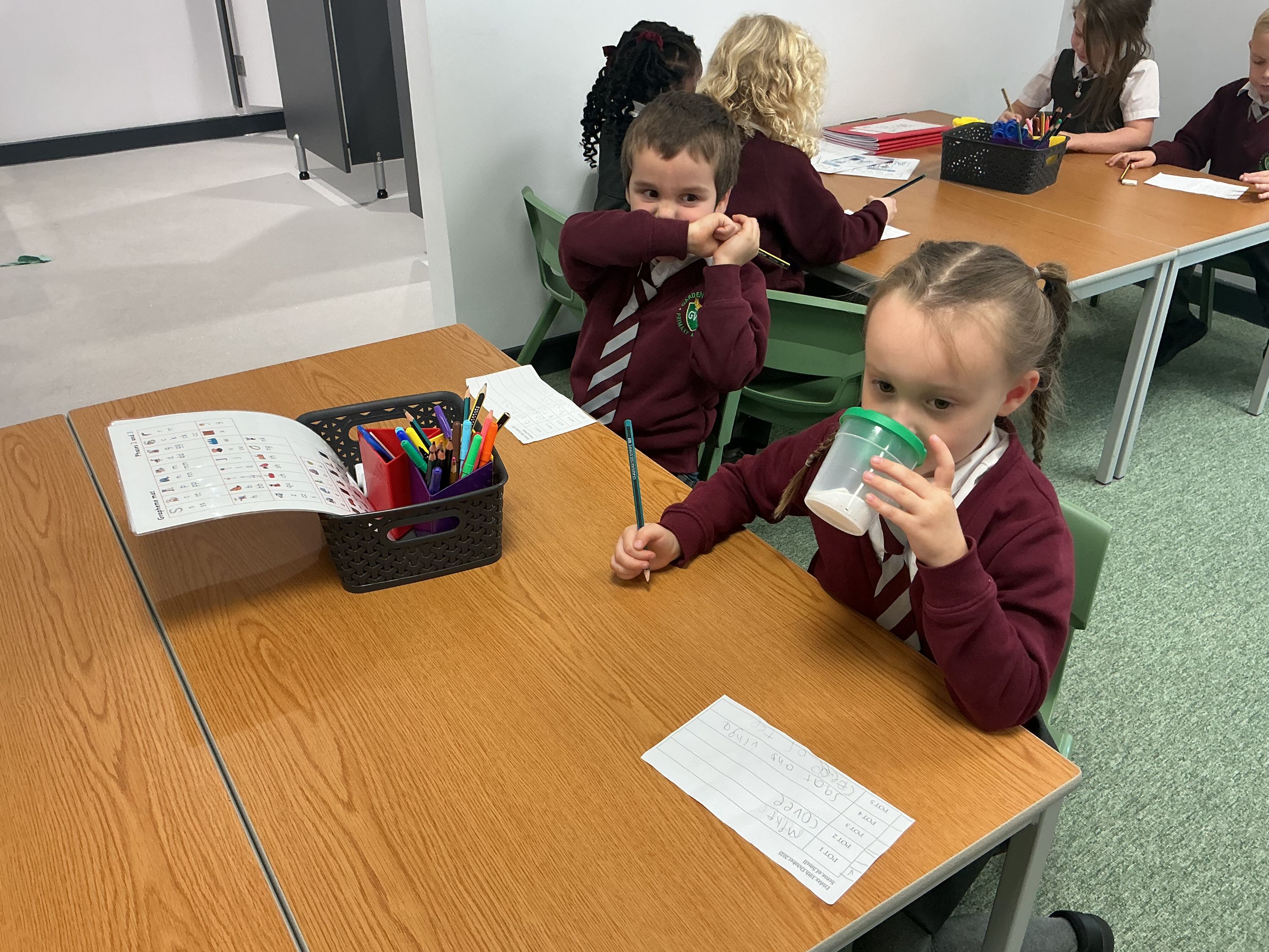 In Science, we finished off our unit on the human body and we completed an experiment all about our sense of smell. The children had different containers and couldn't see what was inside. They had to use their sense of smell and guess what they thought it was. Our favourite was the toothpaste and the vanilla!