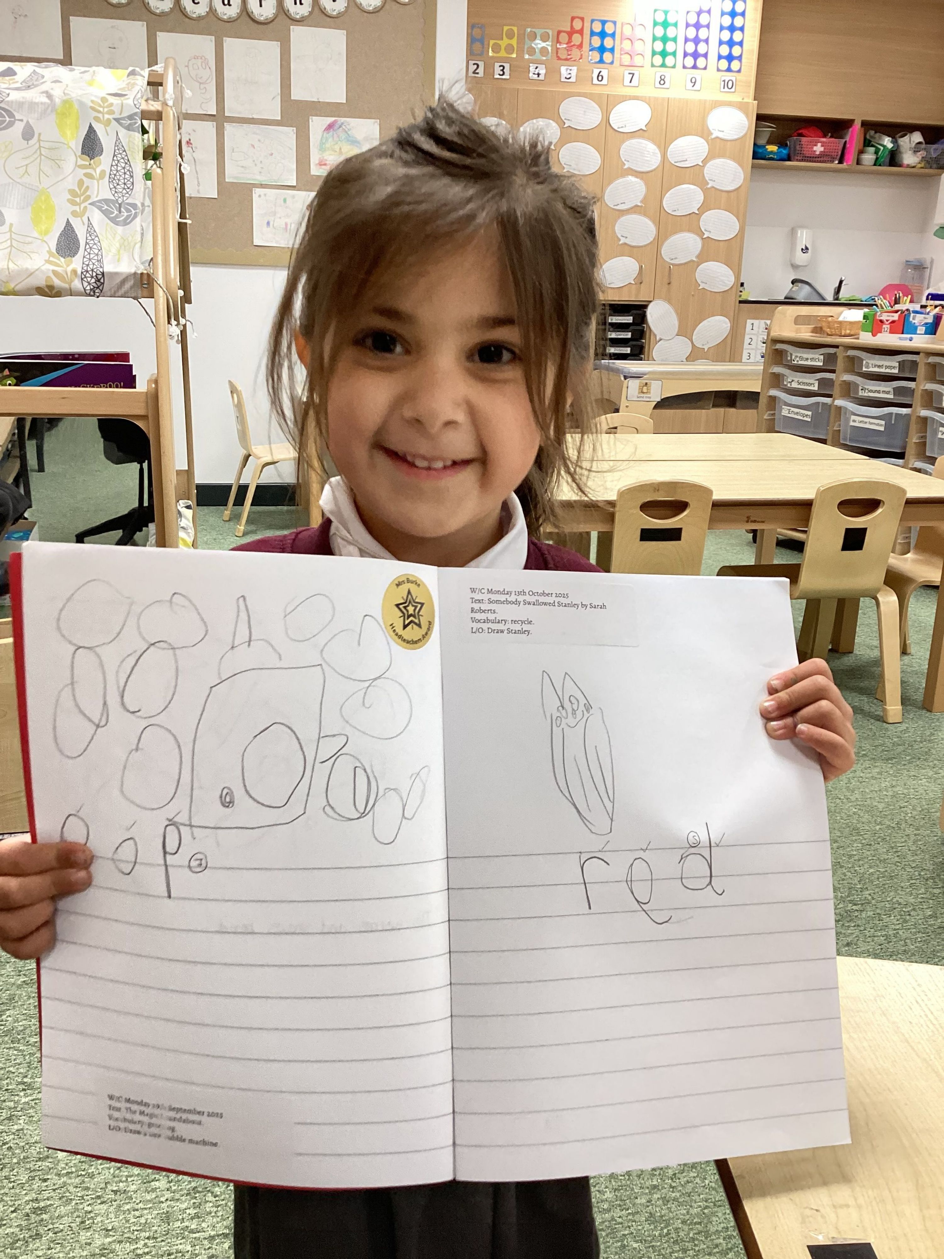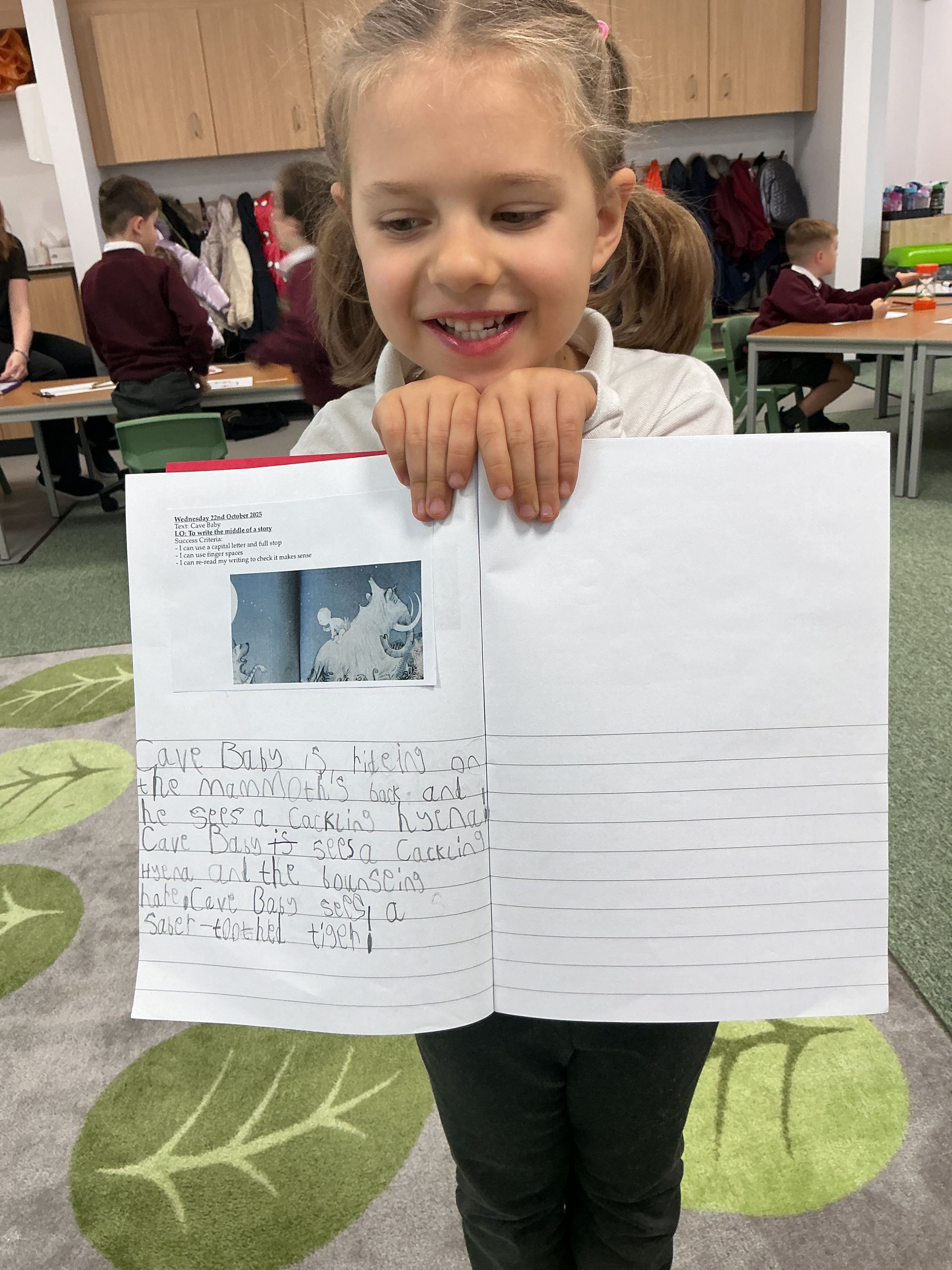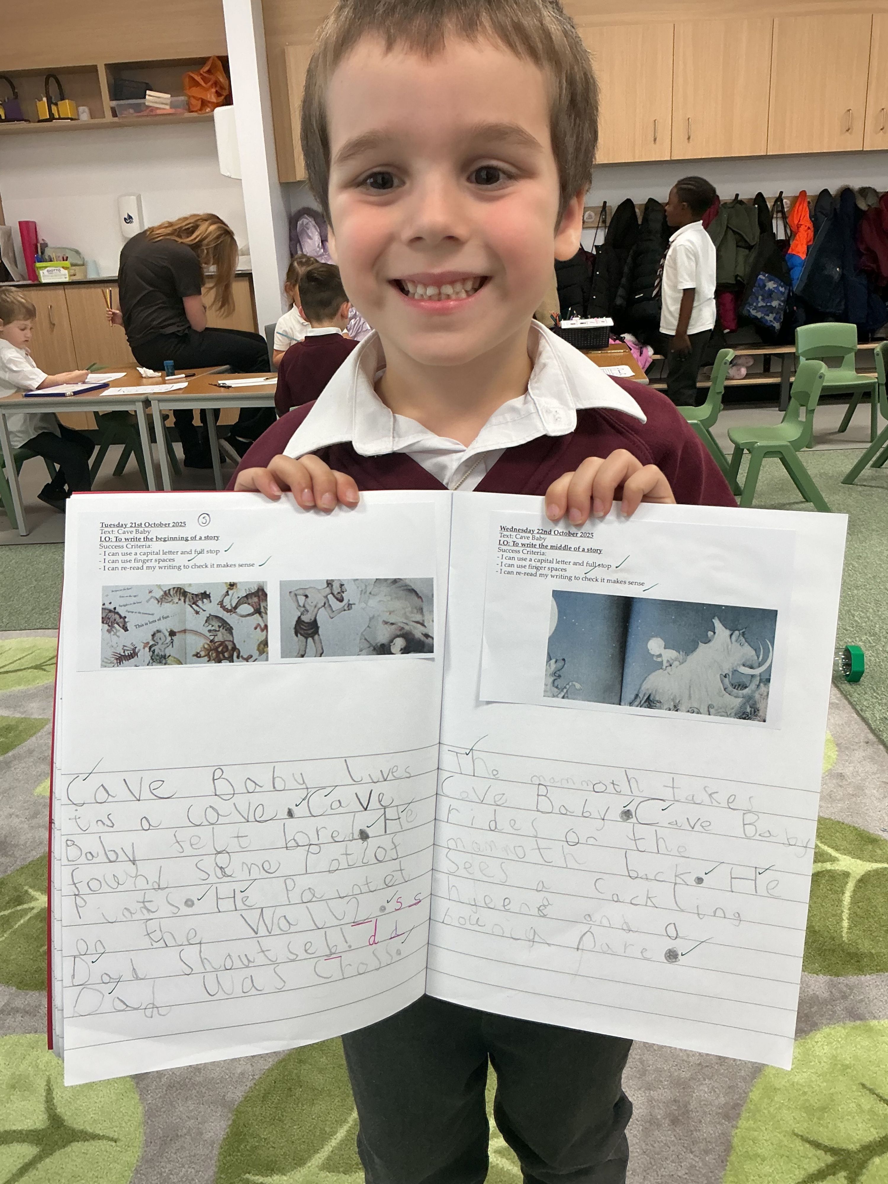In Literacy, we have been learning all about how to use capital letters and full stops accurately. We are now experts at understanding that we need to use subjects and verbs within our sentences and can identify them within our sentences too. We have rewritten the story of 'Cave Baby' and some of us even included some exclamation marks. Mrs Stamp and Miss Roger's couldn't be prouder of all of the children's beautiful stories.