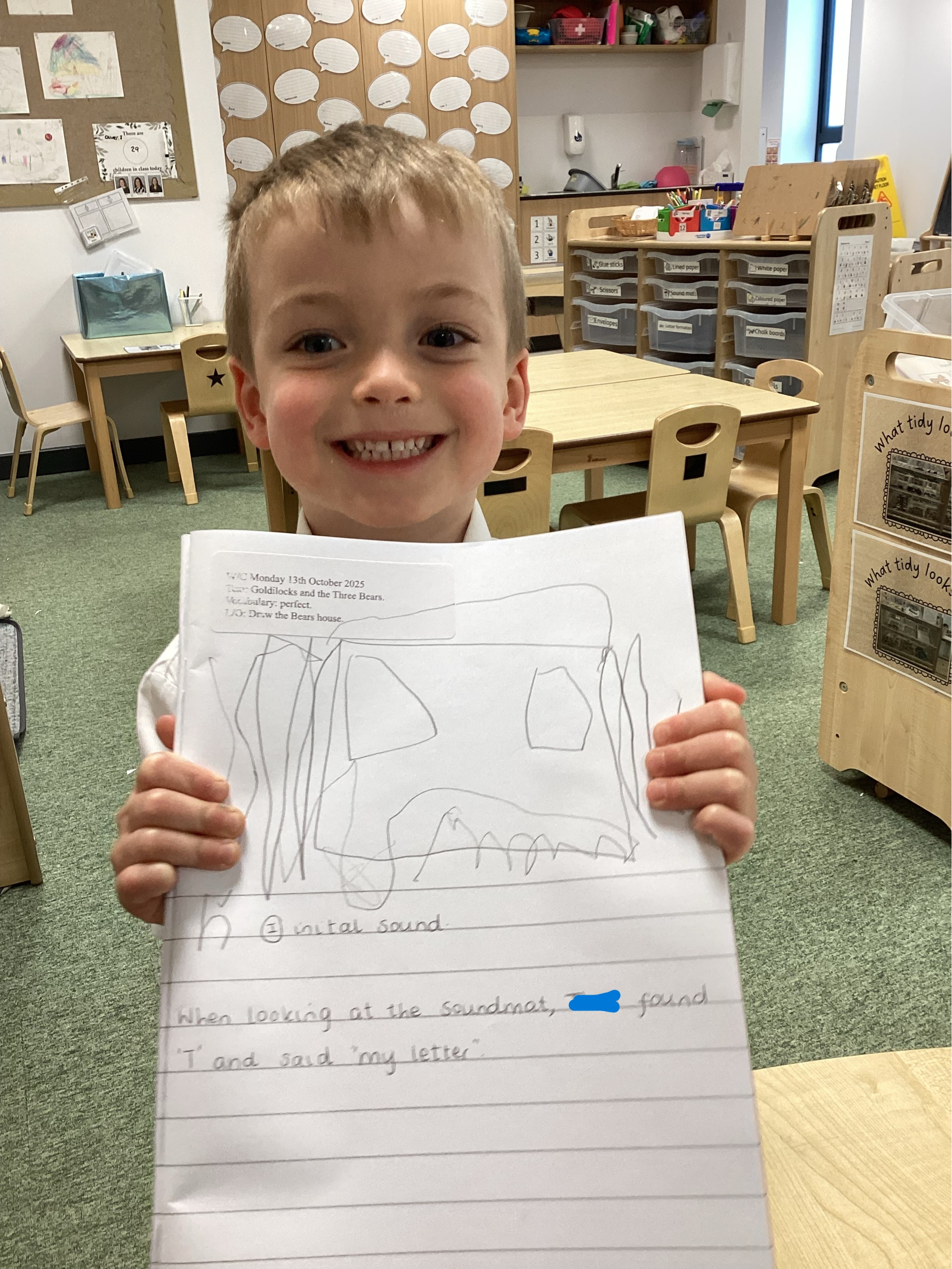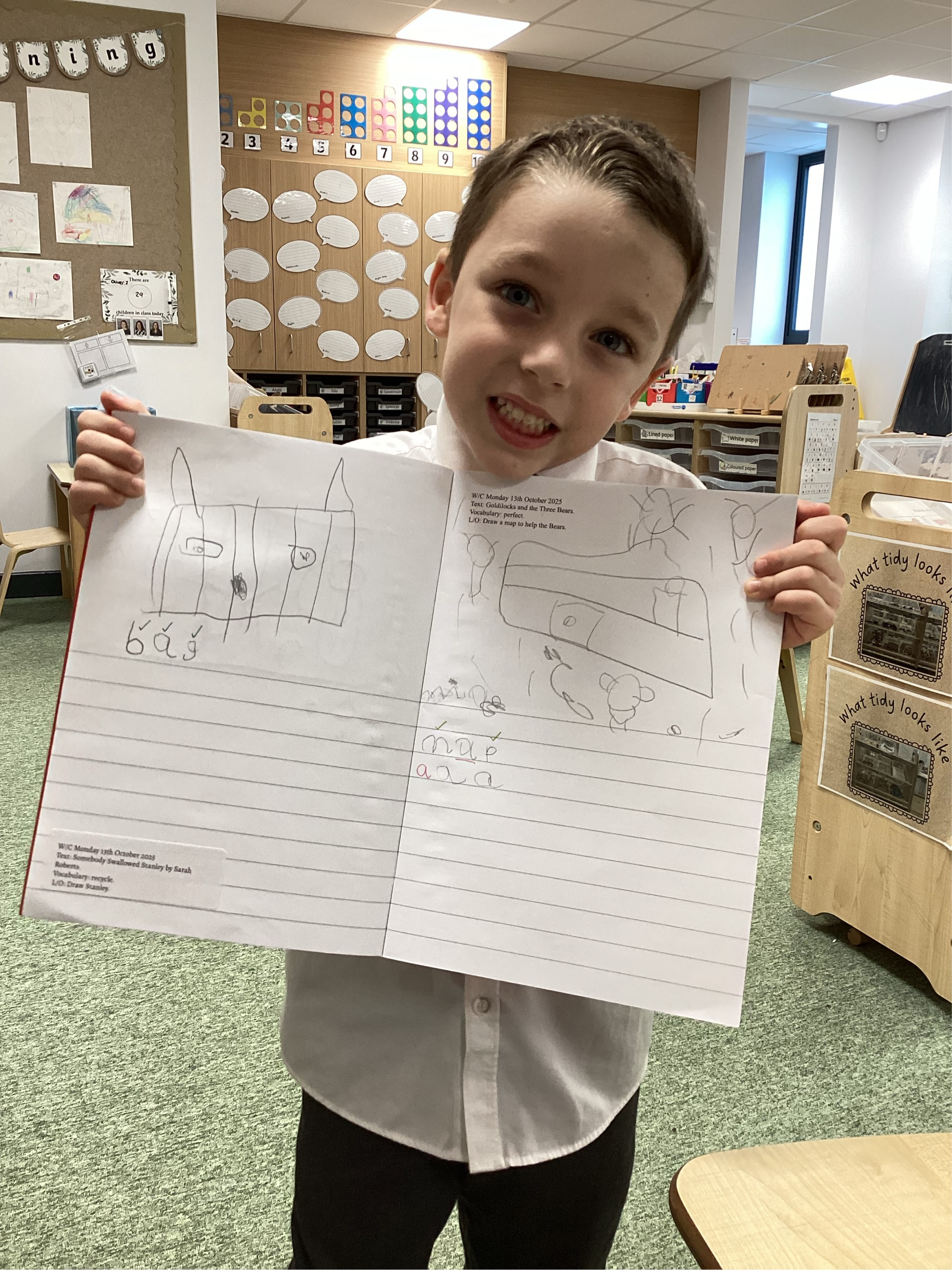 This week, linking to our learning about number three, we read the text Goldilocks and the Three Bears. Using the vocabulary ‘perfect’, the children have drawn maps to help the Bears find Goldilocks, and they have drawn where she may be hiding.