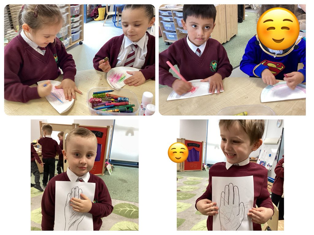 Reception Maple have had lots of fun learning all about the festival of Diwali this week. The children have enjoyed listening to the story ‘Dipal’s Diwali’ and have learnt different ways that families celebrate Diwali. In the provision, we have been creating our own rangoli patterns, mehndi designs and we’ve crafted diya lamps out of paper plates. We even went up to the special practical room on Monday to create our own diya/candle pots out of clay! It was very messy, but we had lots of fun.