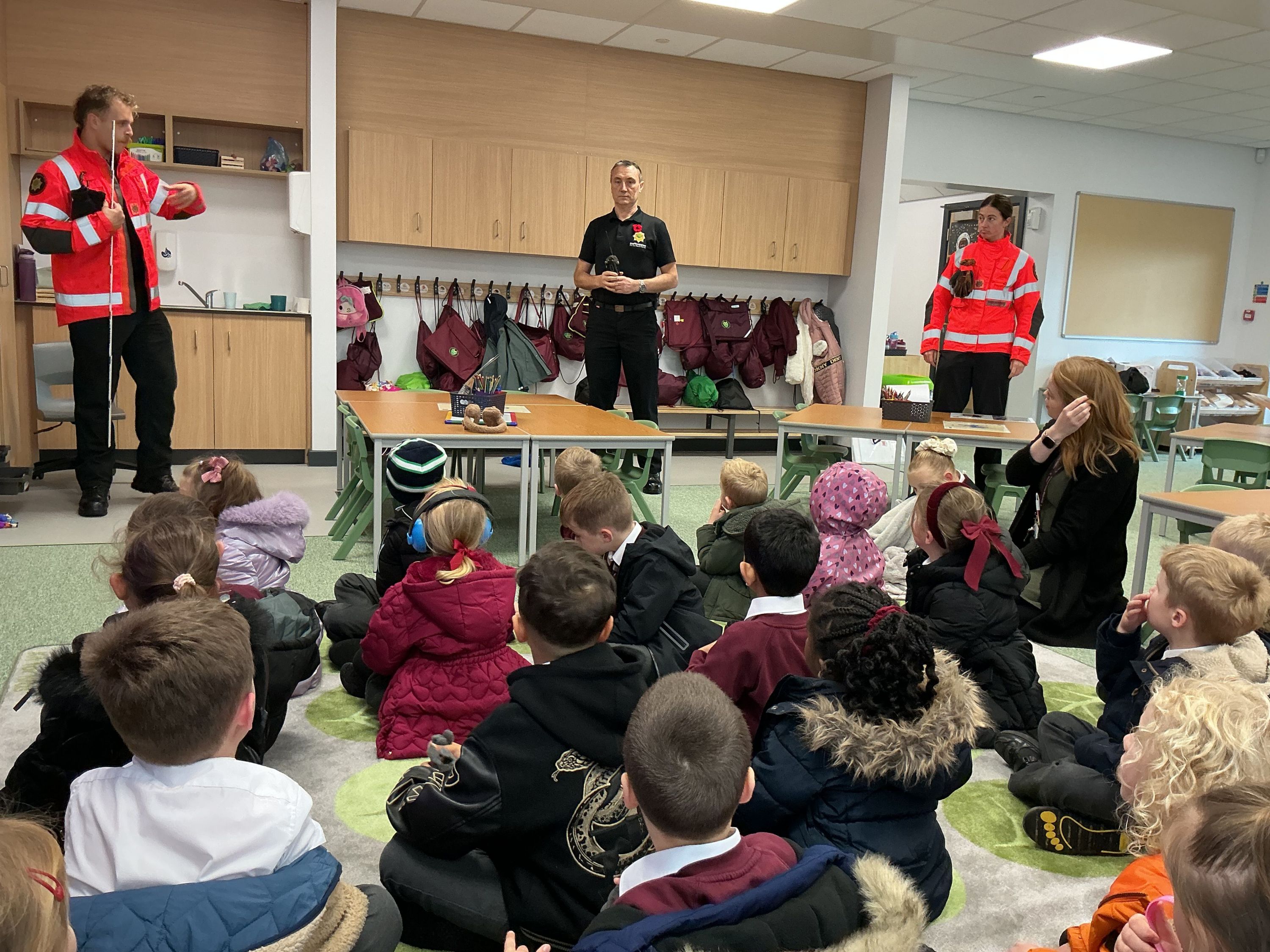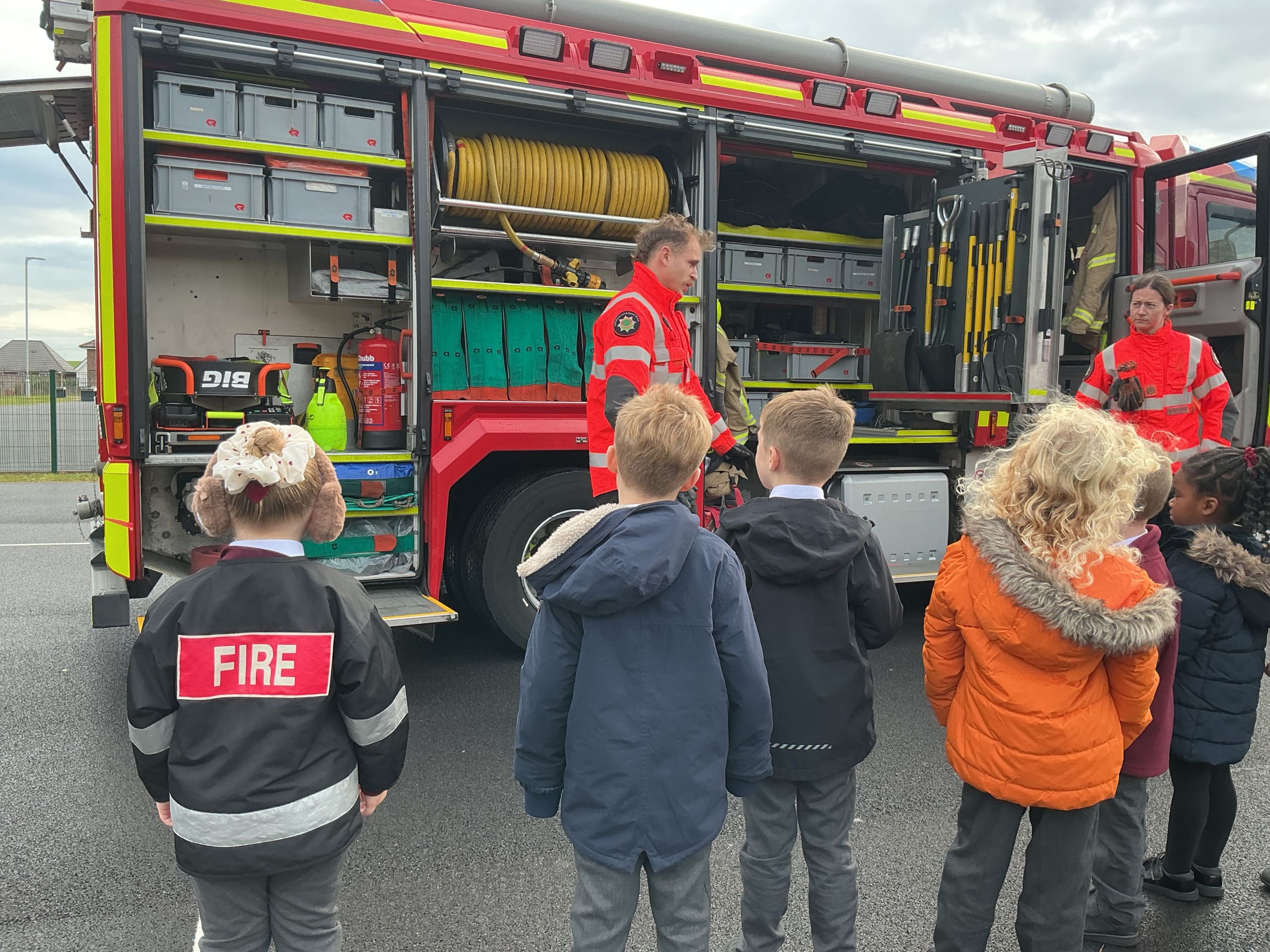 On Wednesday 5th November, the Green Watch Crew visited Year 1 Rowan. The fire crew showed and spoke about their roles, and then they came into the classroom to talk to teach us about how to stay safe.