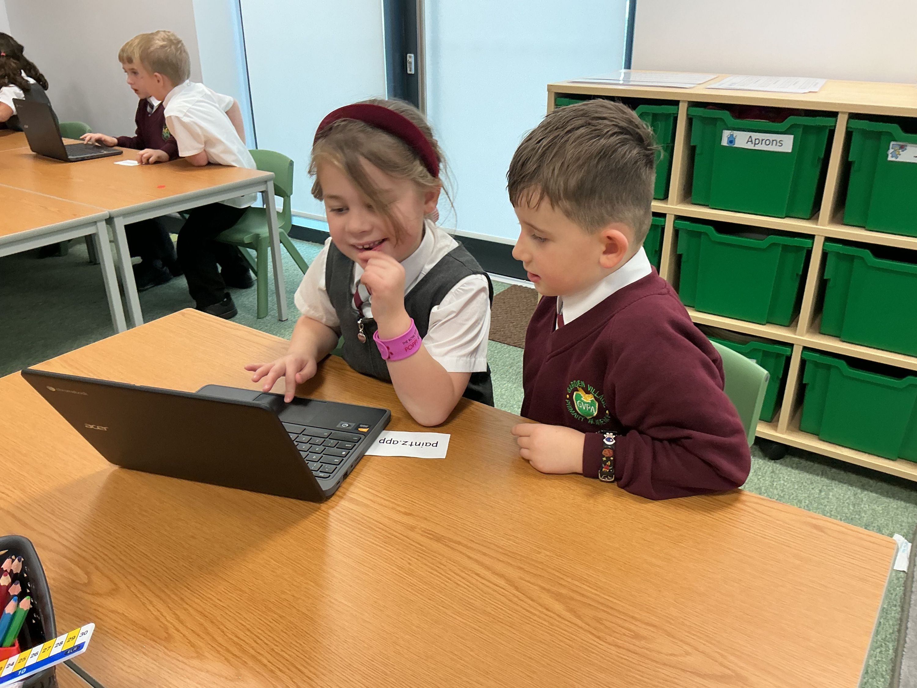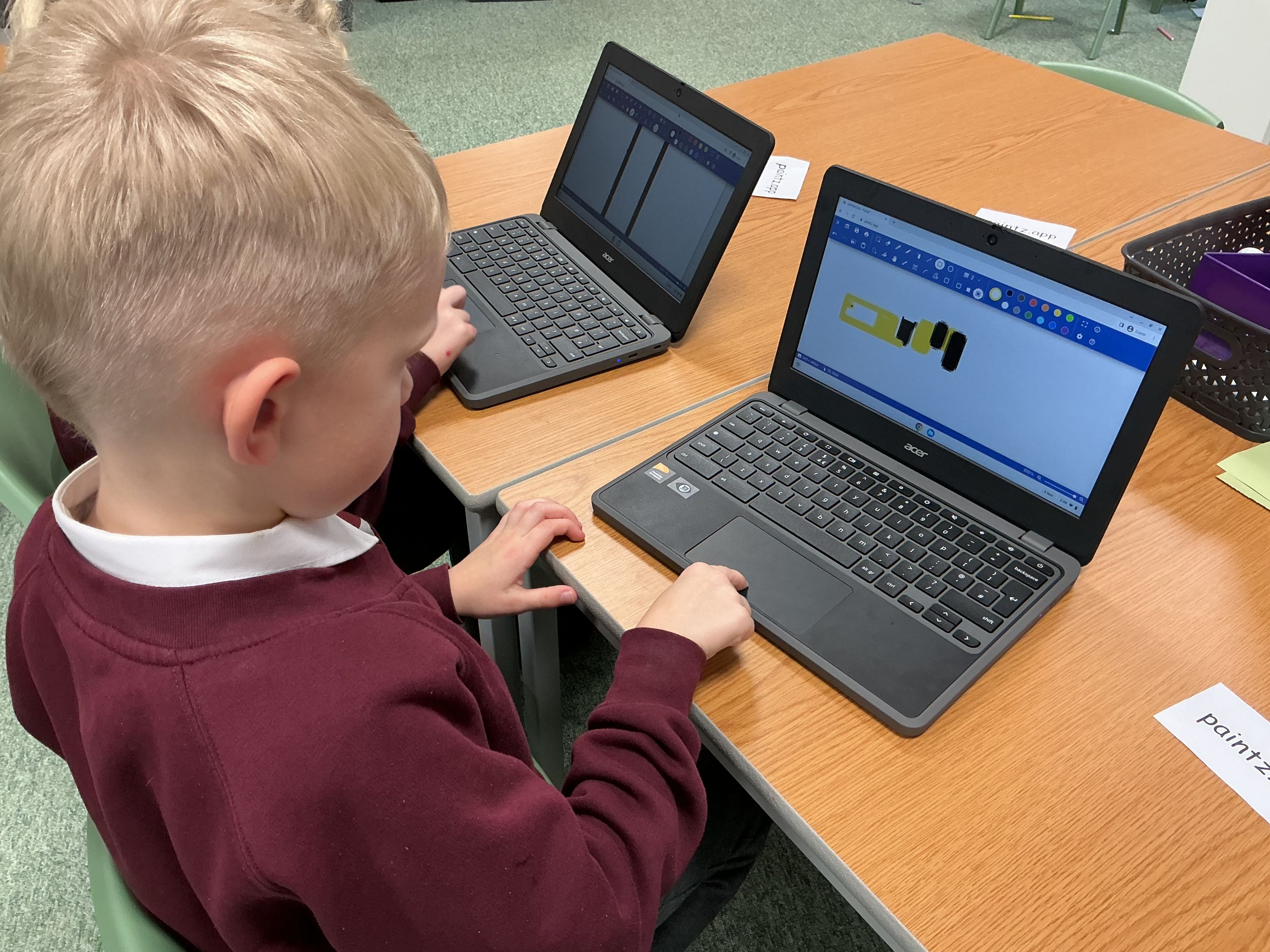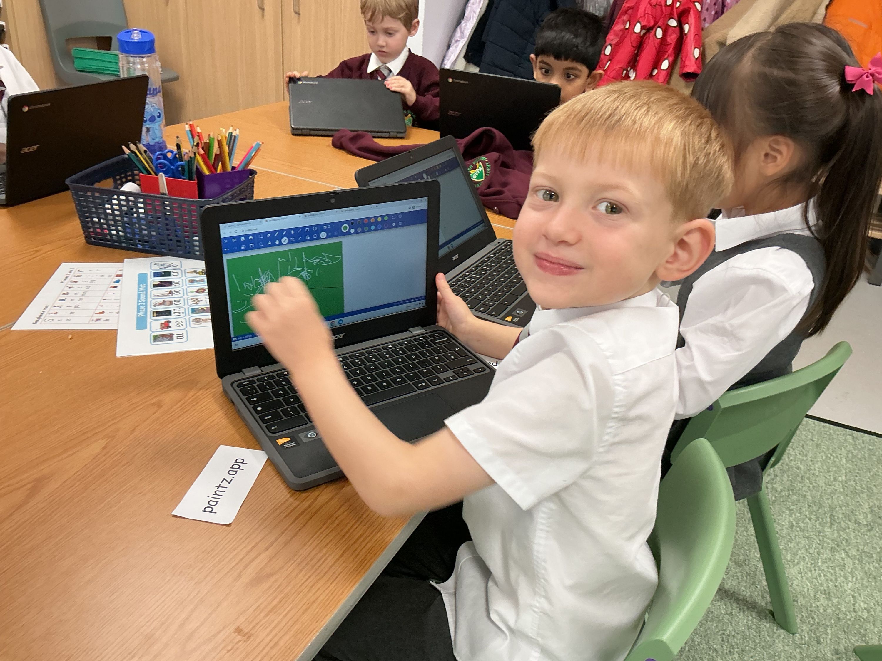 In computing this week, using Chromebooks, Mrs Burke taught us how to use the mouse or 'trackpad' to click and drag objects. Although tricky at first, using two hands, we persevered to use a paint app to draw a picture. We were so proud of our achievements... some children repeated the lesson at home too and emailed the pictures in.