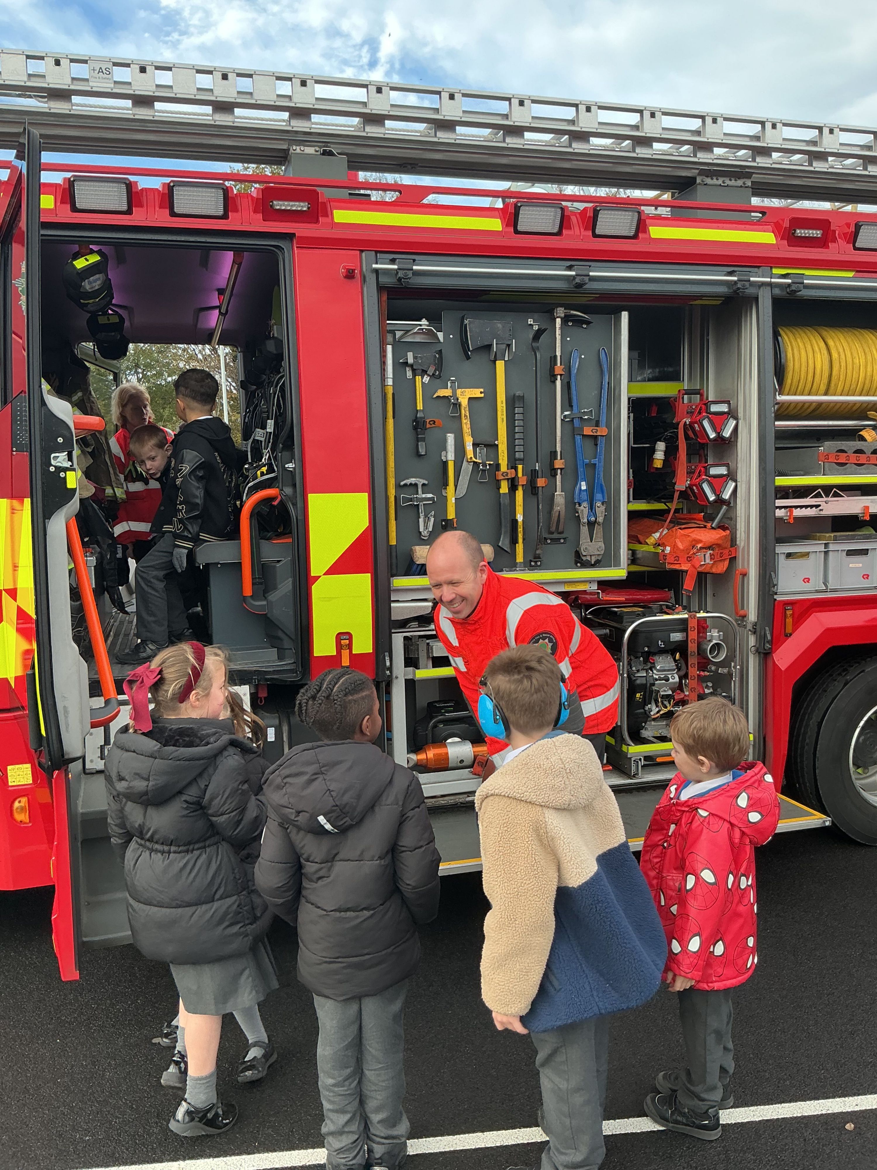 On Tuesday 4th November, Belgrave fire crew brought their fire-engine to GVPA for the Reception children to learn about, supporting their knowledge of ‘people who help us’. The excitement when the fire engine drove alongside our classroom, parked in our playground flashing its lights was incredible. The crew helped the children hold and spray one of the hoses and every child got to sit in the vehicle. It was a memorable moment for every child!