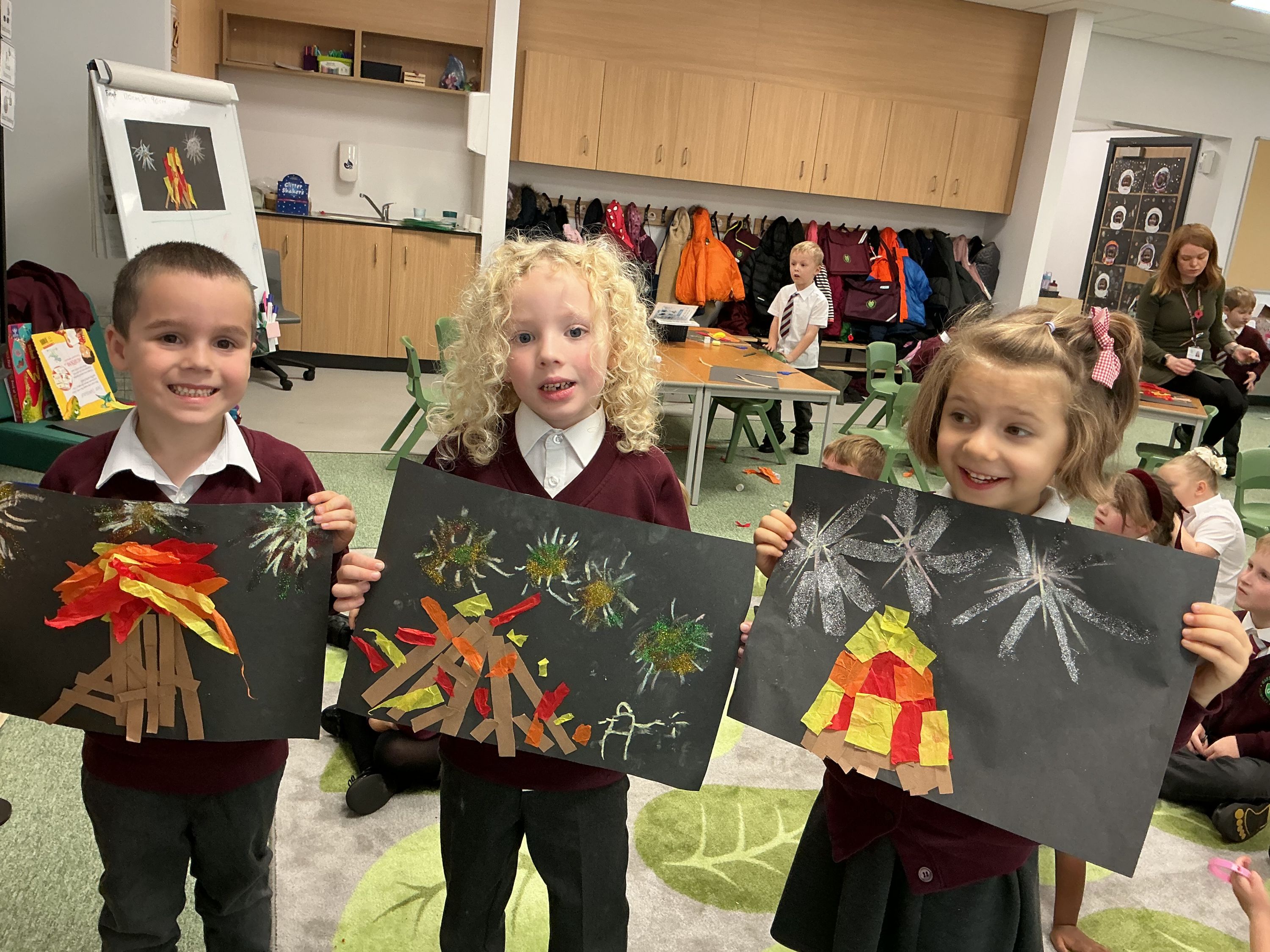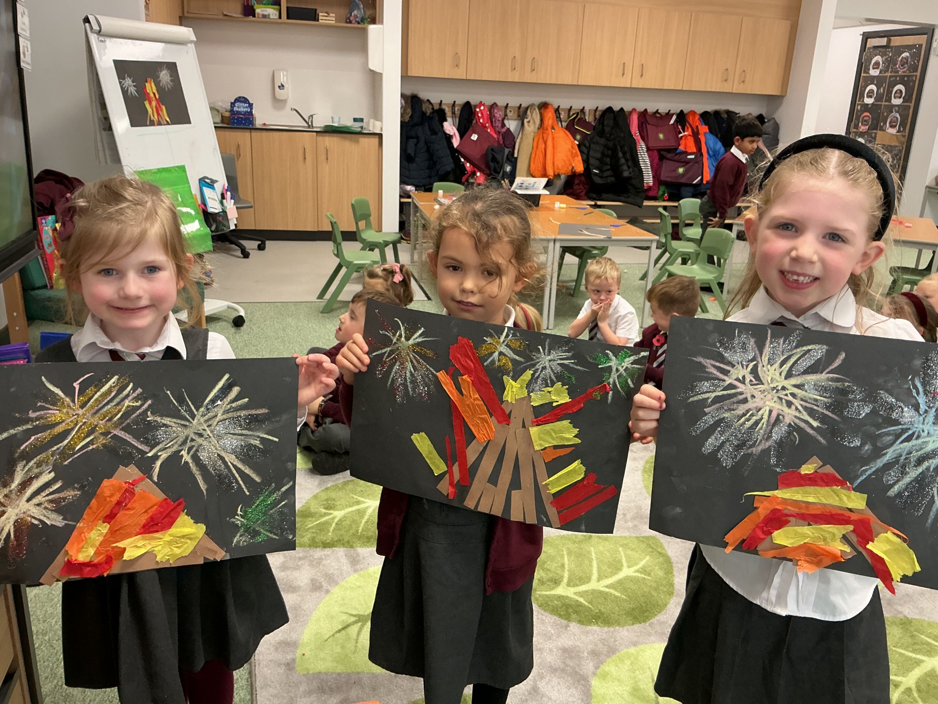 We have been learning all about the history of bonfire night this week. We listened to the story of Guy Fawkes, and then we created collaged bonfire night pictures.