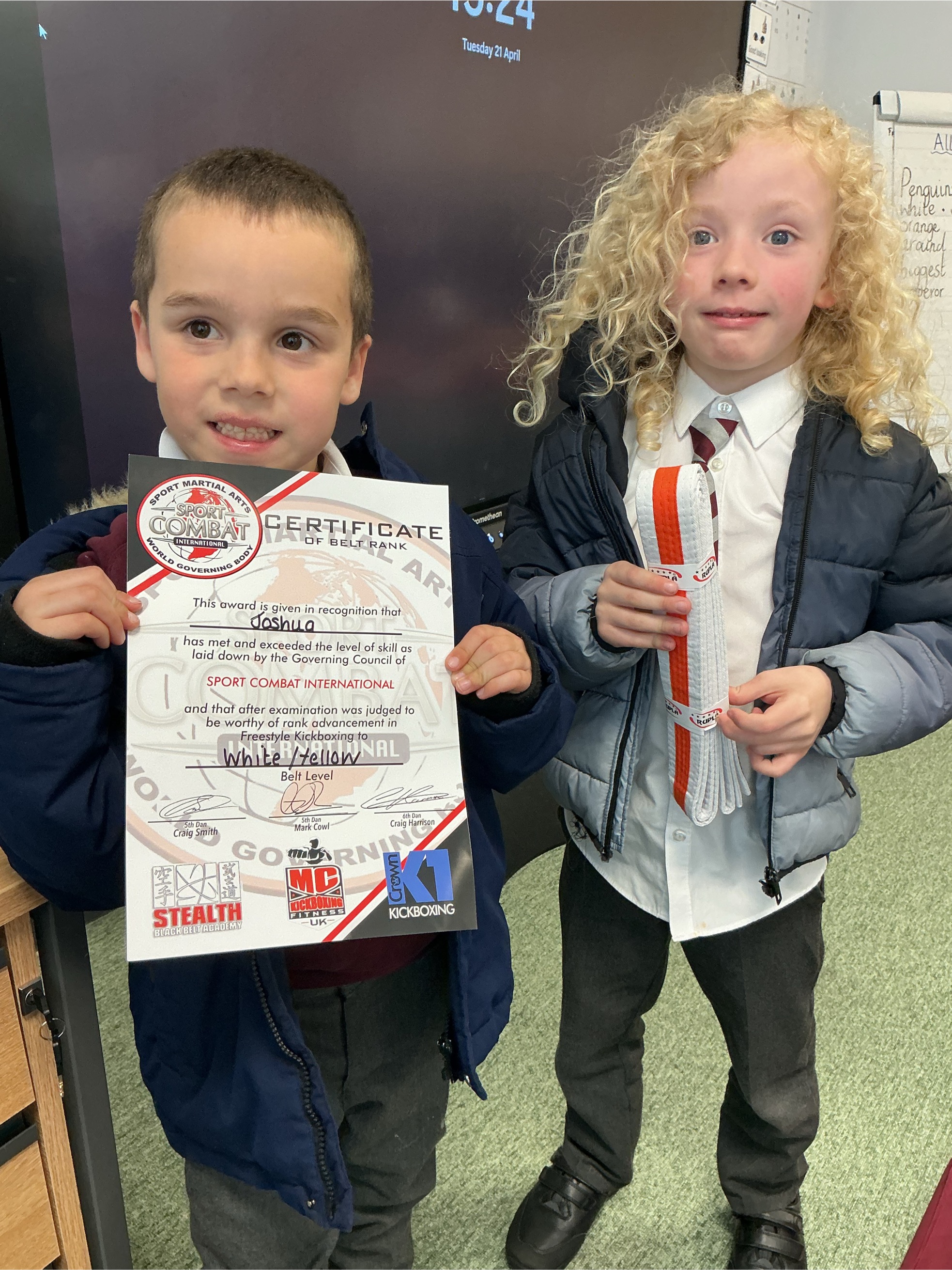 Well done to these children for achieving the next belt in kick boxing.