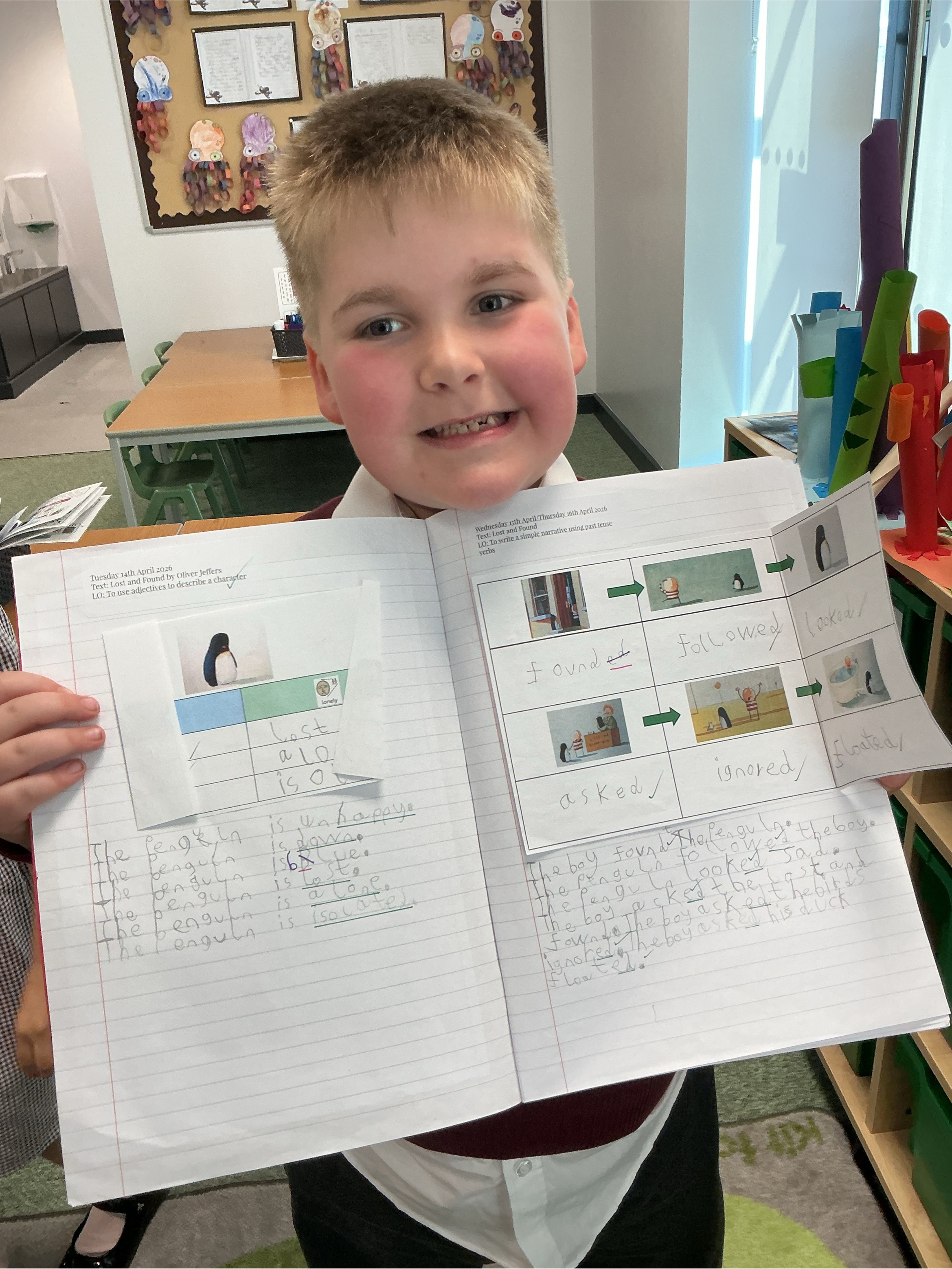 In English, we have been enjoying the story Lost and Found by Oliver Jeffers. The children have produced some outstanding work while developing new skills, including using past tense verbs, joining sentences with the conjunction but, and creating fact files all about penguins. We have been so impressed with their effort and creativity.