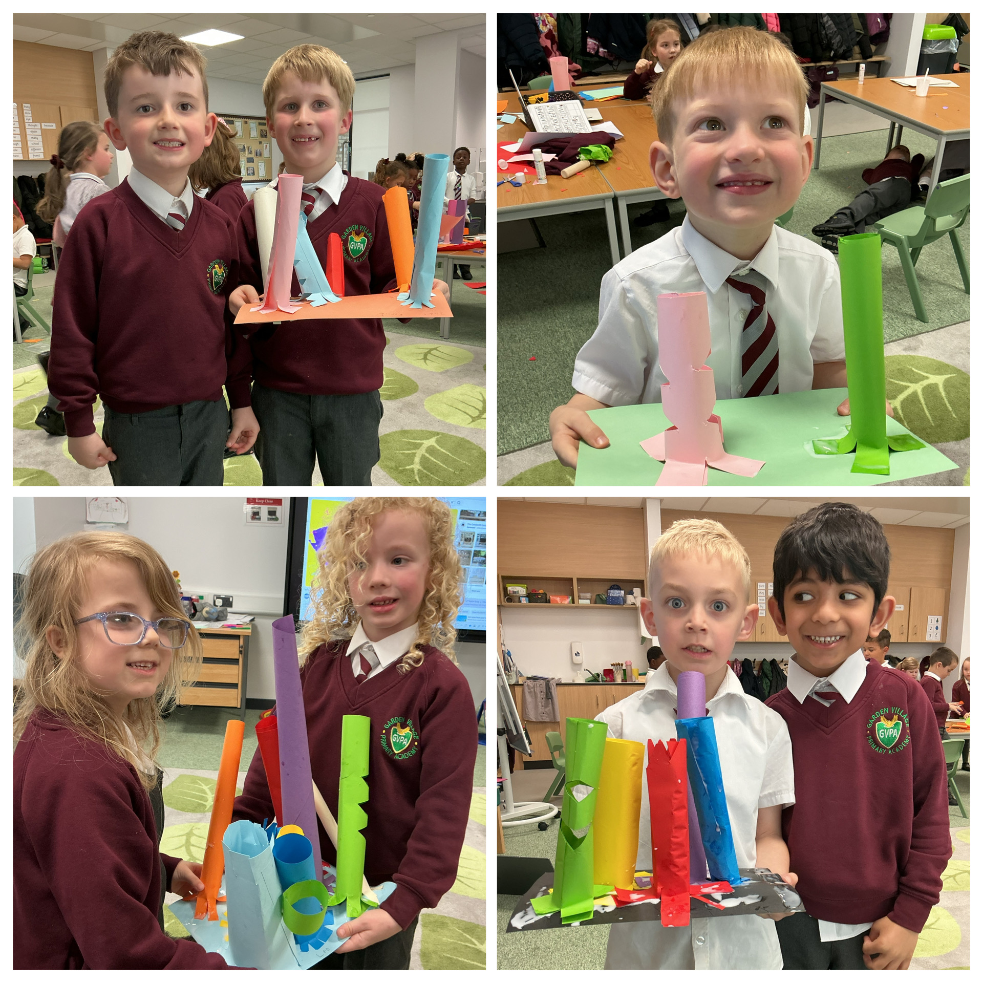 In Art, the children have been working collaboratively towards creating a 3D sculpture using paper. This project encourages teamwork and problem-solving skills. So far, the children have been learning how to roll paper cylinders, which will form the base of their sculptures, and they have shown great perseverance and cooperation.