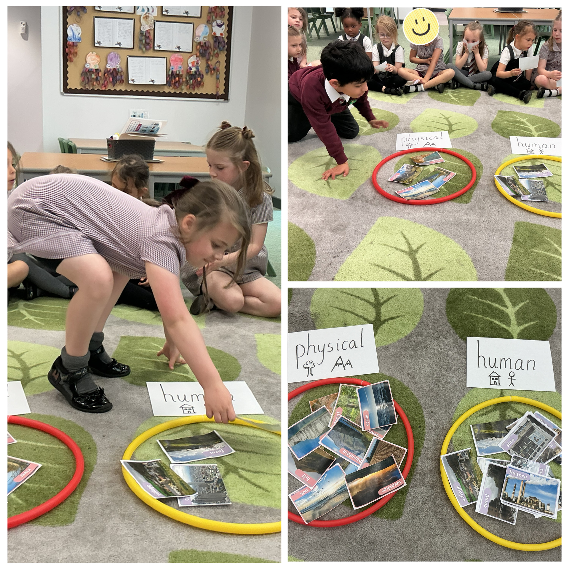 Our Geography lessons have focused on human and physical features. The children sorted different features into the correct groups and then explored the school grounds to identify what they could see around them. We also looked at an aerial photograph of the castle grounds, where the children used their knowledge to spot and name human and physical features in their hometown.