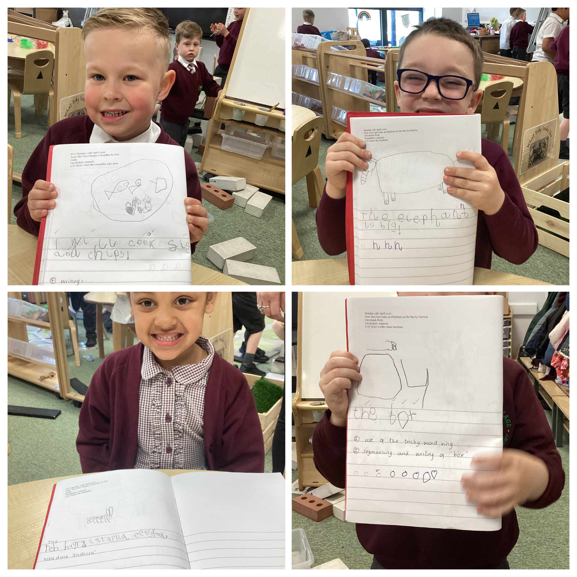 The Children are continually blowing us away with their growing phonetical knowledge and reading fluency. They are starting to apply their Phase 4 skills in their writing.